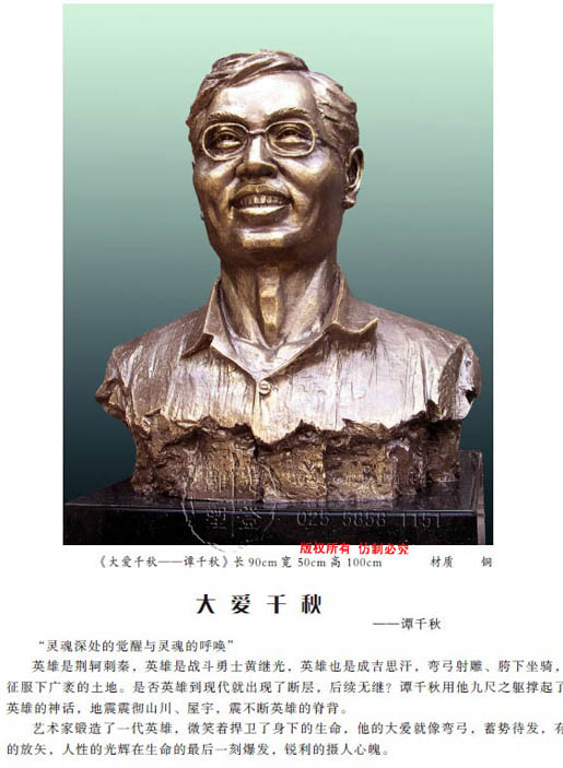 南京心博网页家东郭教授为512汶川地震烈士教师-----谭千秋铸铜人像心博网页