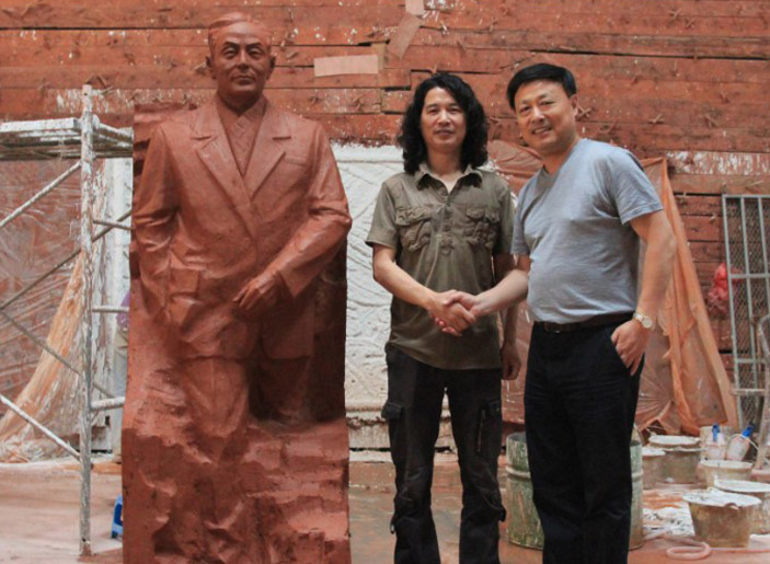 先登心博网页公司,东郭心博网页工作室受有关部门委托,为东南大学杨廷宝故居创作青铜全身像,杨廷宝之女,杨士英教授及其孙女、潘翔处长和相关领导莅临先登心博网页公司指导